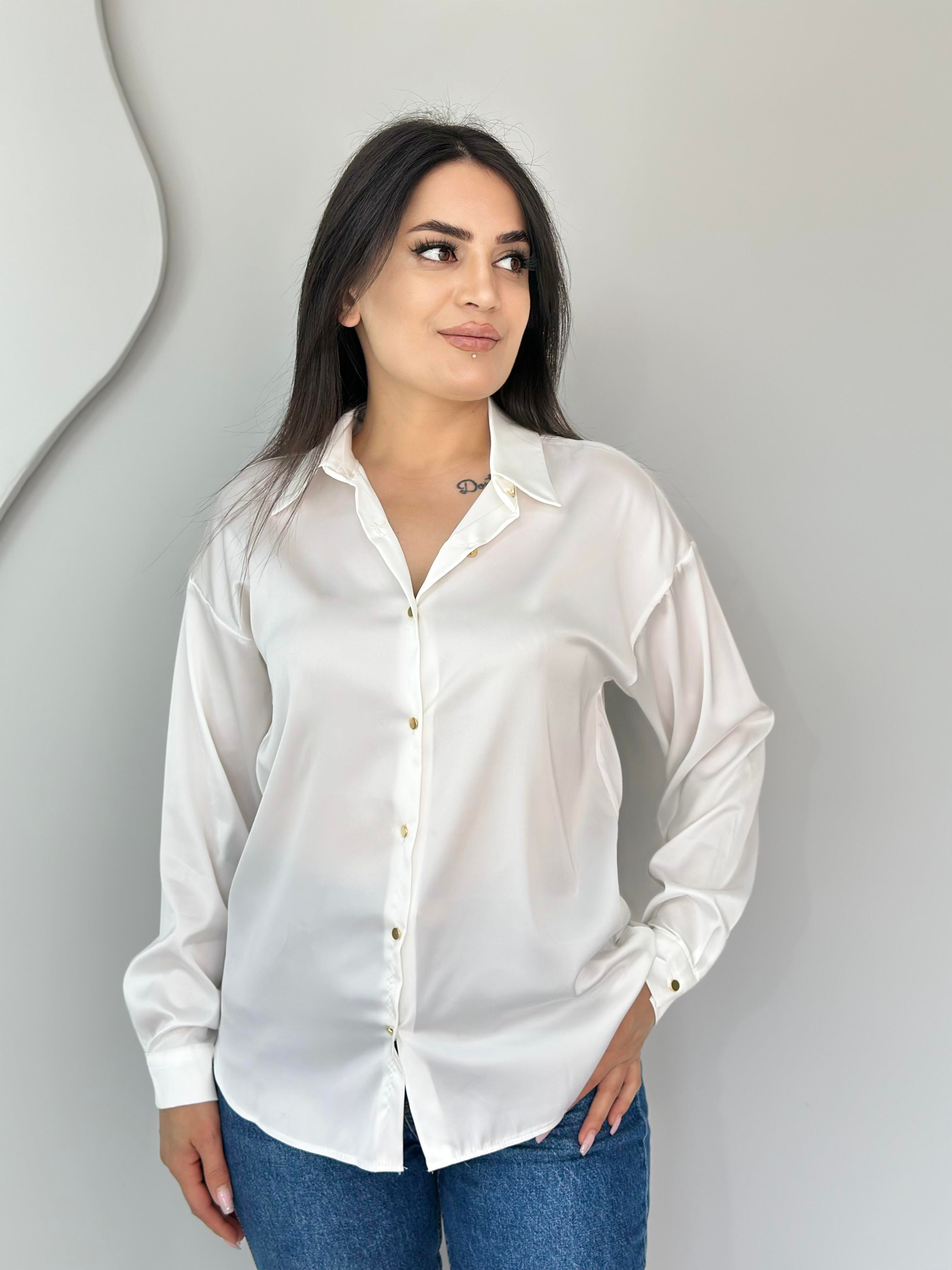 Bissa Beyaz Metal Düğmeli Dökümlü Saten Gömlek A033