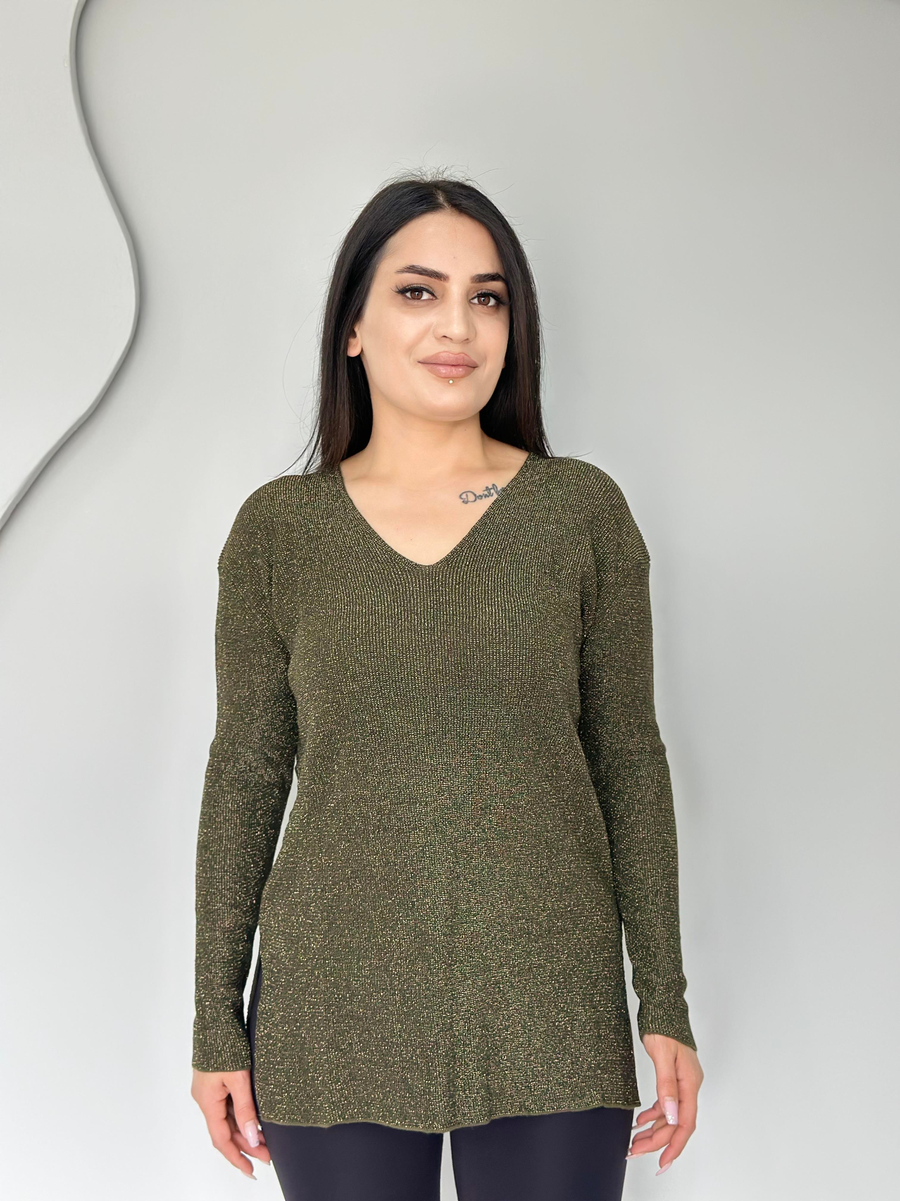 Felix Haki V Yaka Simli Yırtmaç Detay Likralı Triko Bluz A108 (A108)