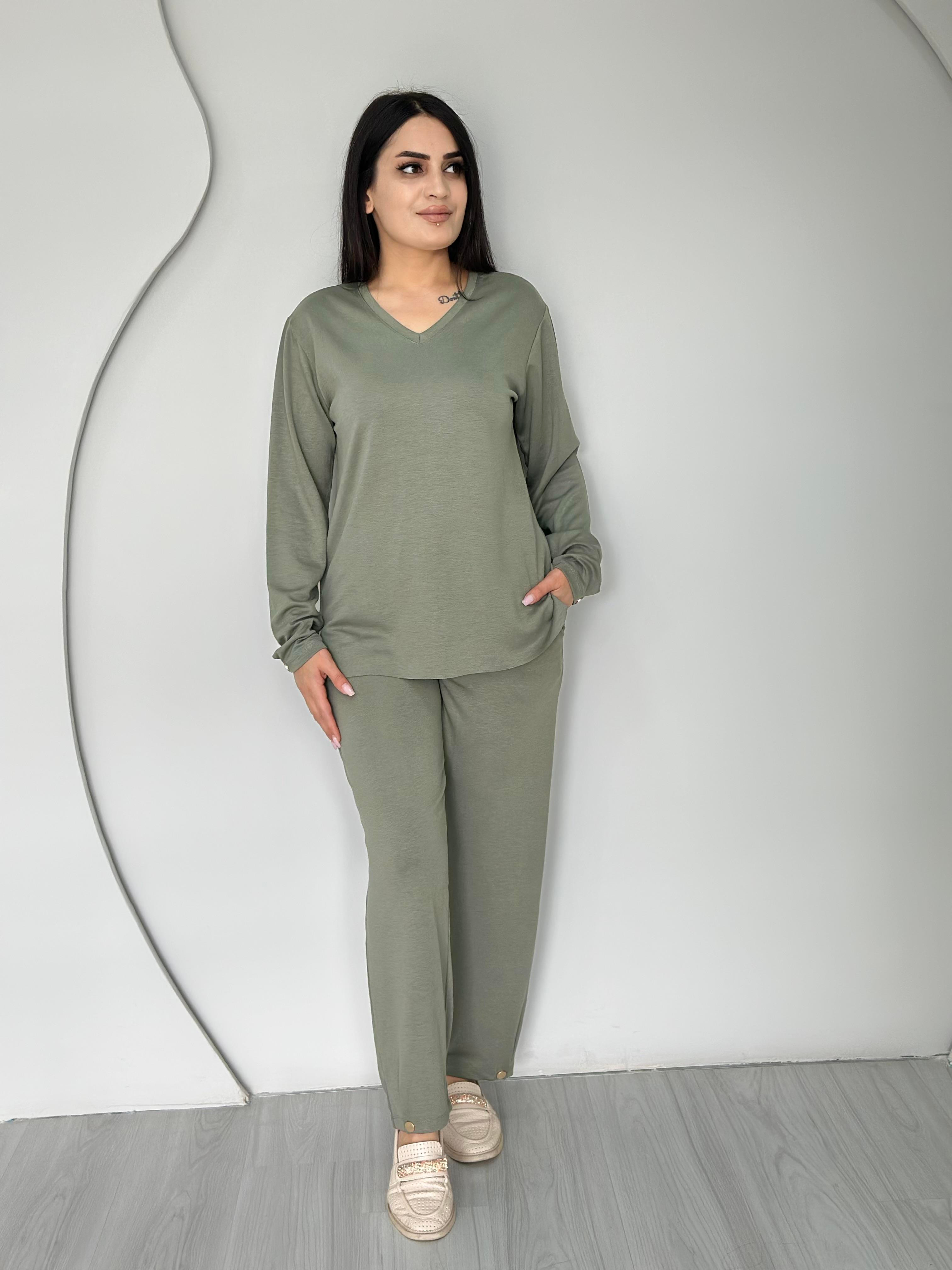 Logi Haki V Yaka İpek Modal Kumaş Kolu Paçası Çıtçıtlı Takım A101