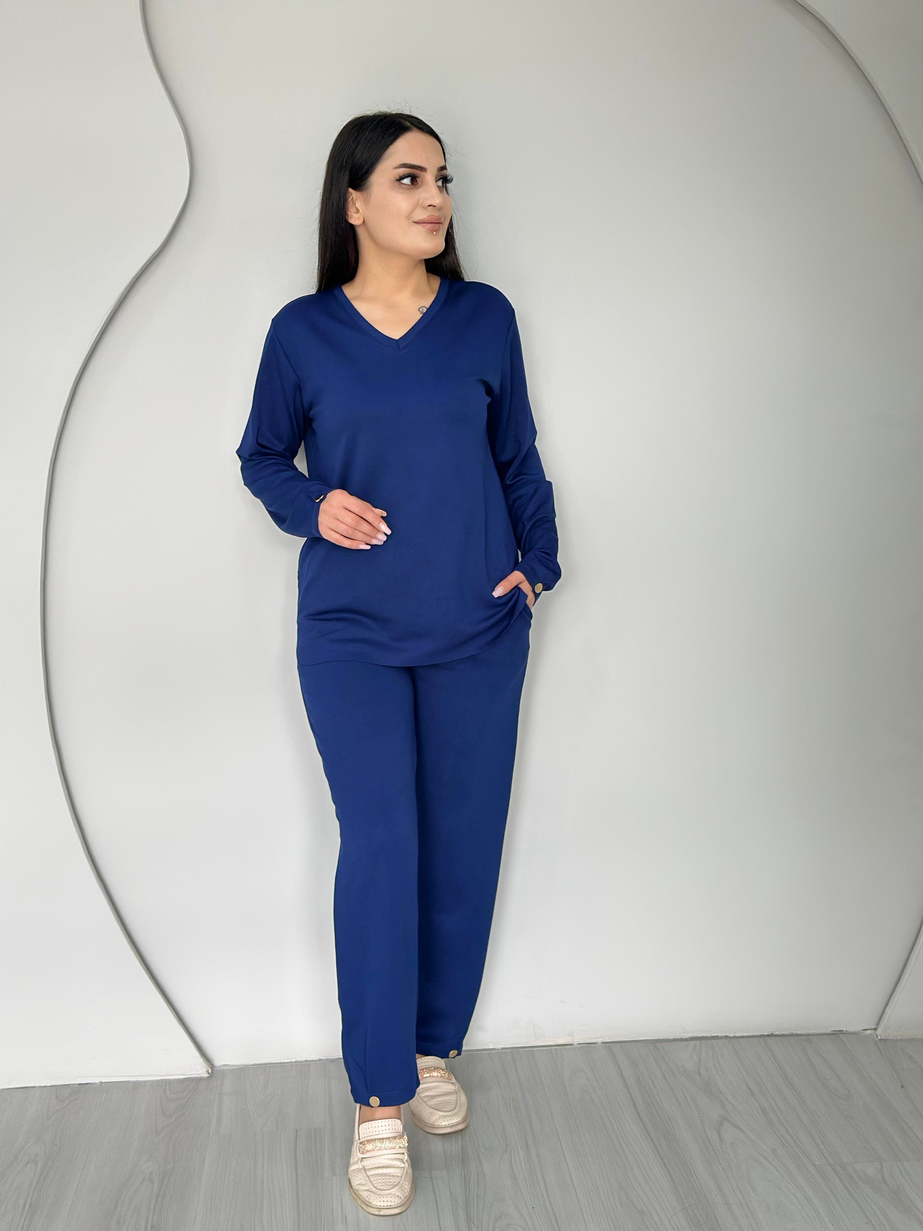 Logi Lacivert V Yaka İpek Modal Kumaş Kolu Paçası Çıtçıtlı Takım A103