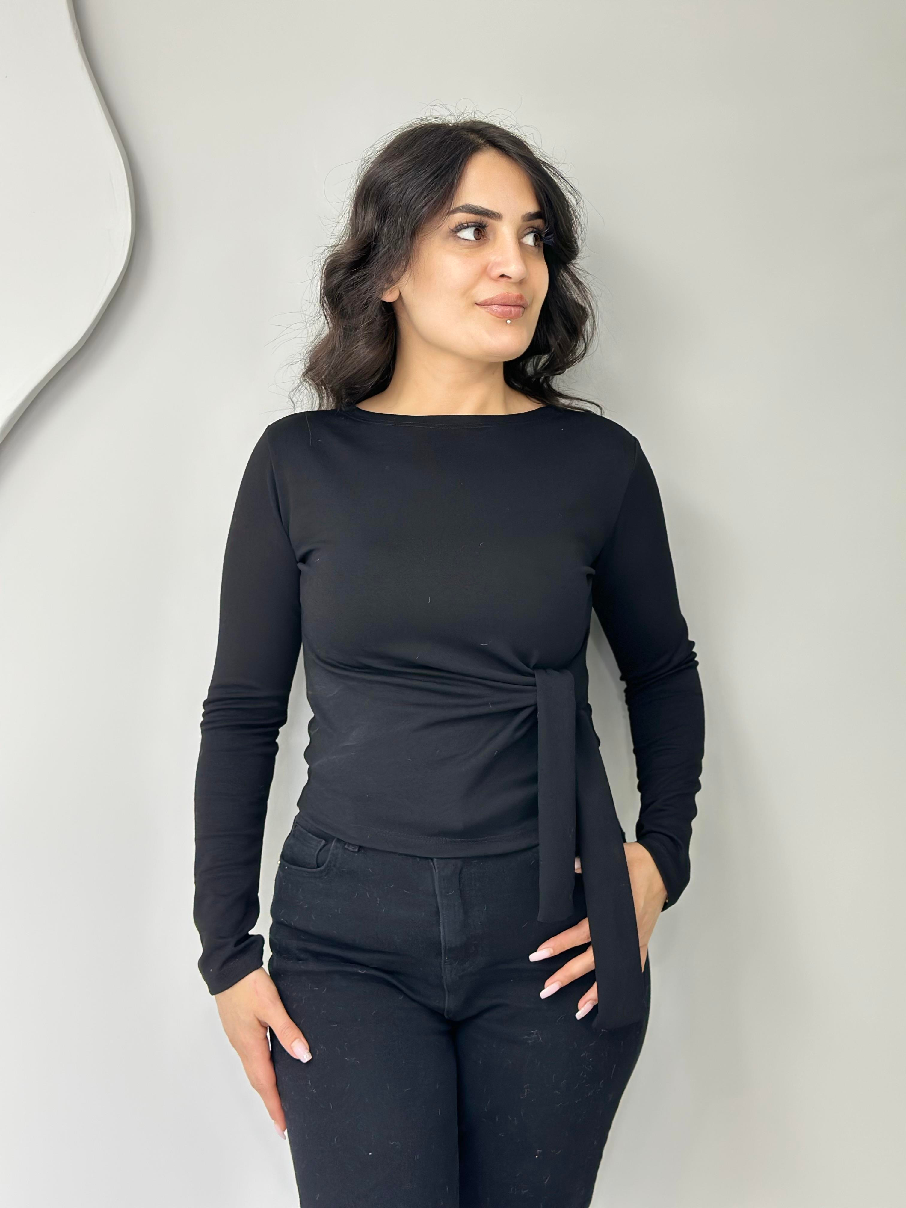 Noa Siyah Belden Bağlamalı Modal Kollu Bluz A042