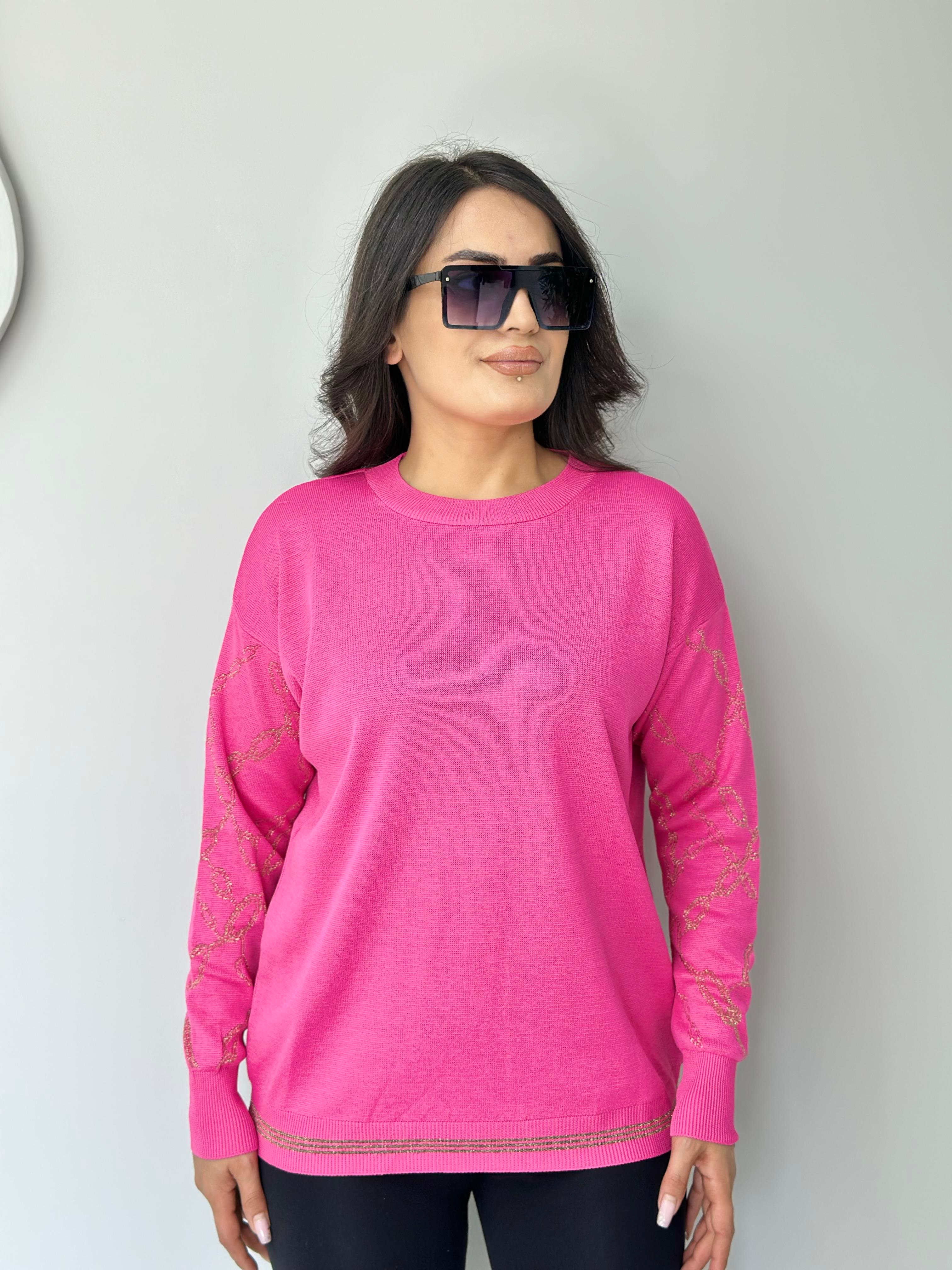 Rush Pembe Bisiklet Yaka Kolları Zincir Desenli Triko Kazak A319 (A319)