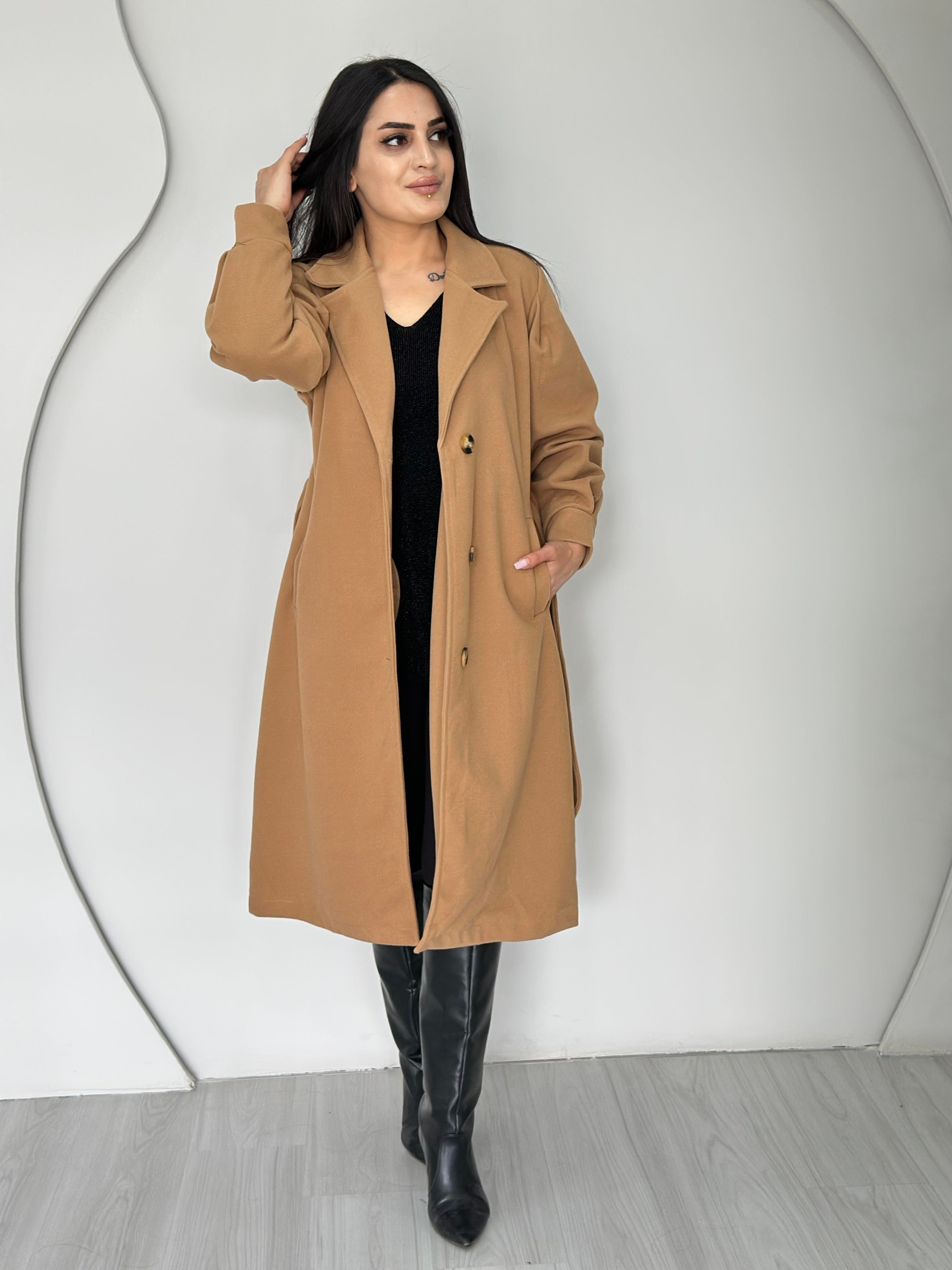 Soho Camel Kruvaze Kuşaklı Astralı Lüks Kalite Cepli Kaşe Kaban A112 (A112)
