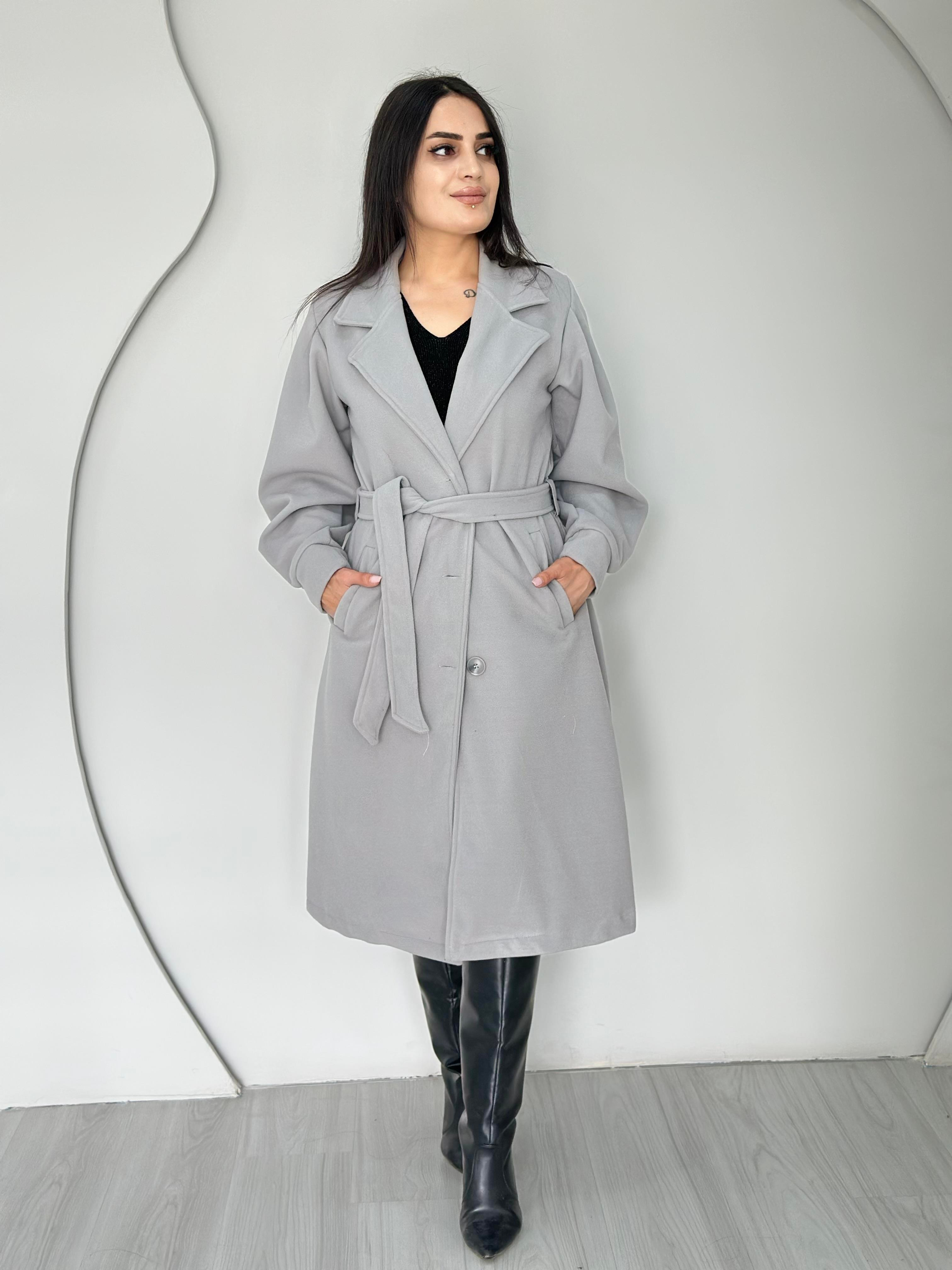 Soho Gri Kruvaze Kuşaklı Astralı Lüks Kalite Cepli Kaşe Kaban A111 (A111)