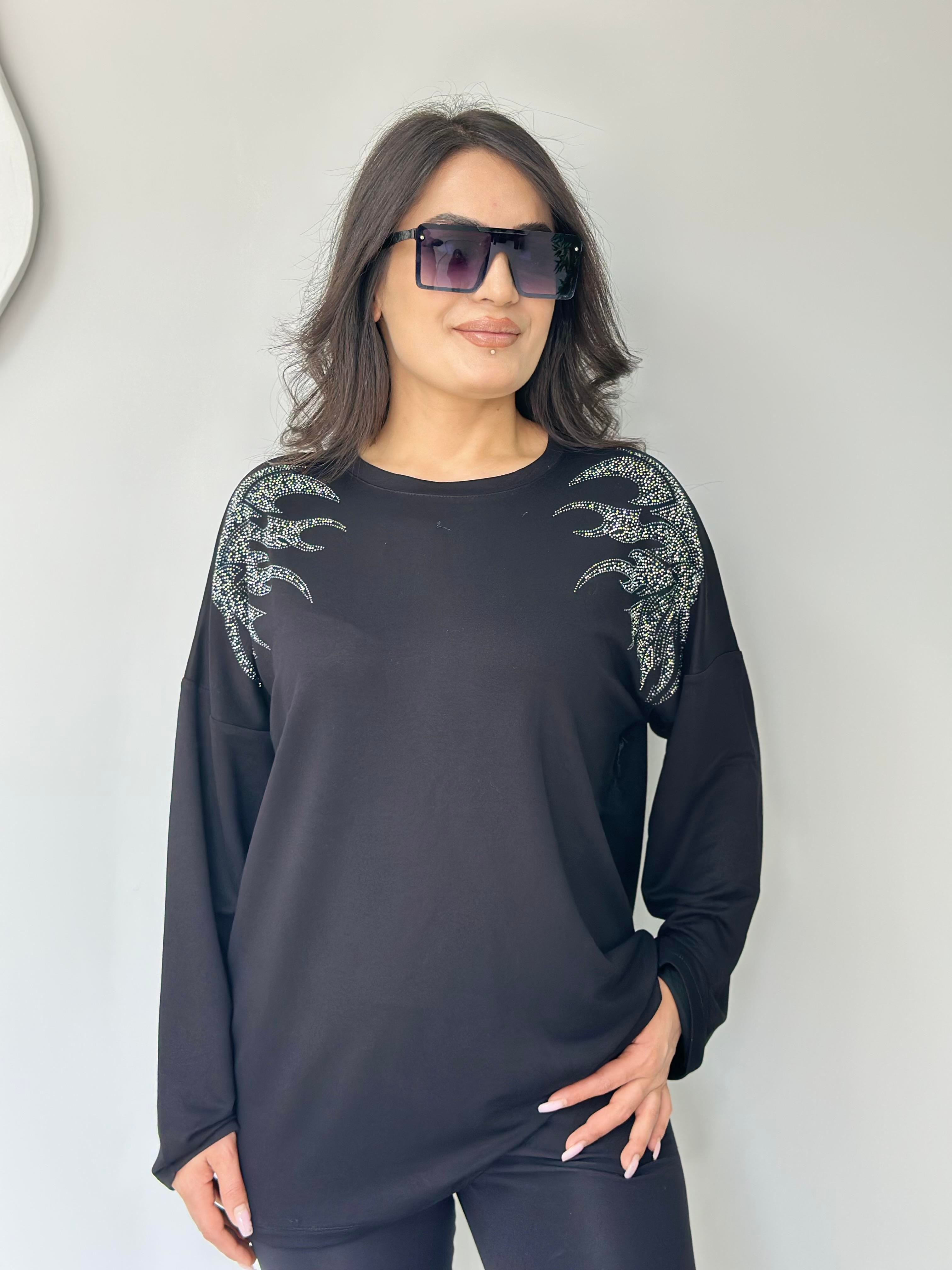 Vito Siyah Bisiklet Yaka Omuz Taş İşleme Viskon Bluz A309 (A309)