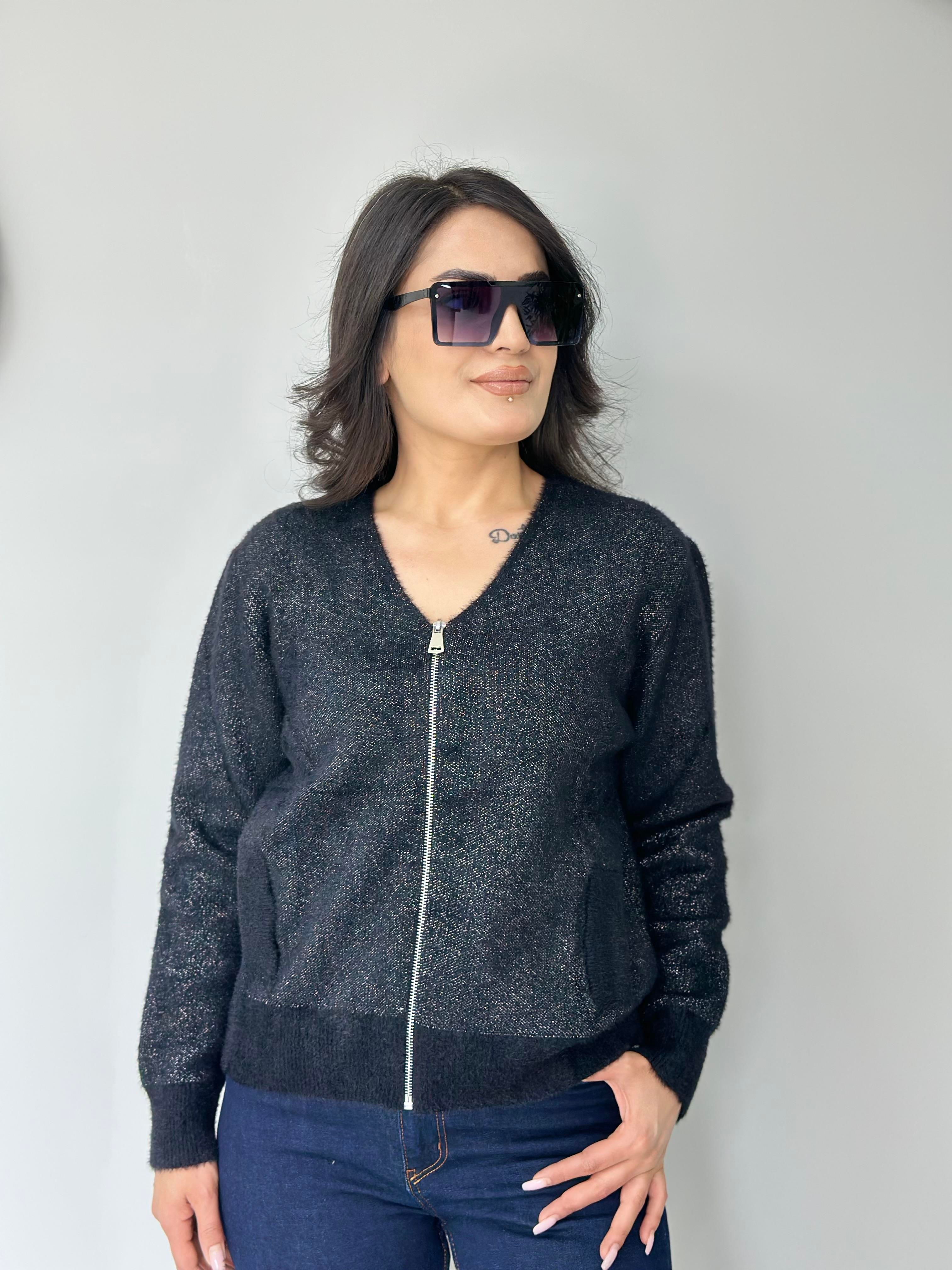 Viya Siyah Fermuarlı Tüylü Premium Hırka A307 (A307)