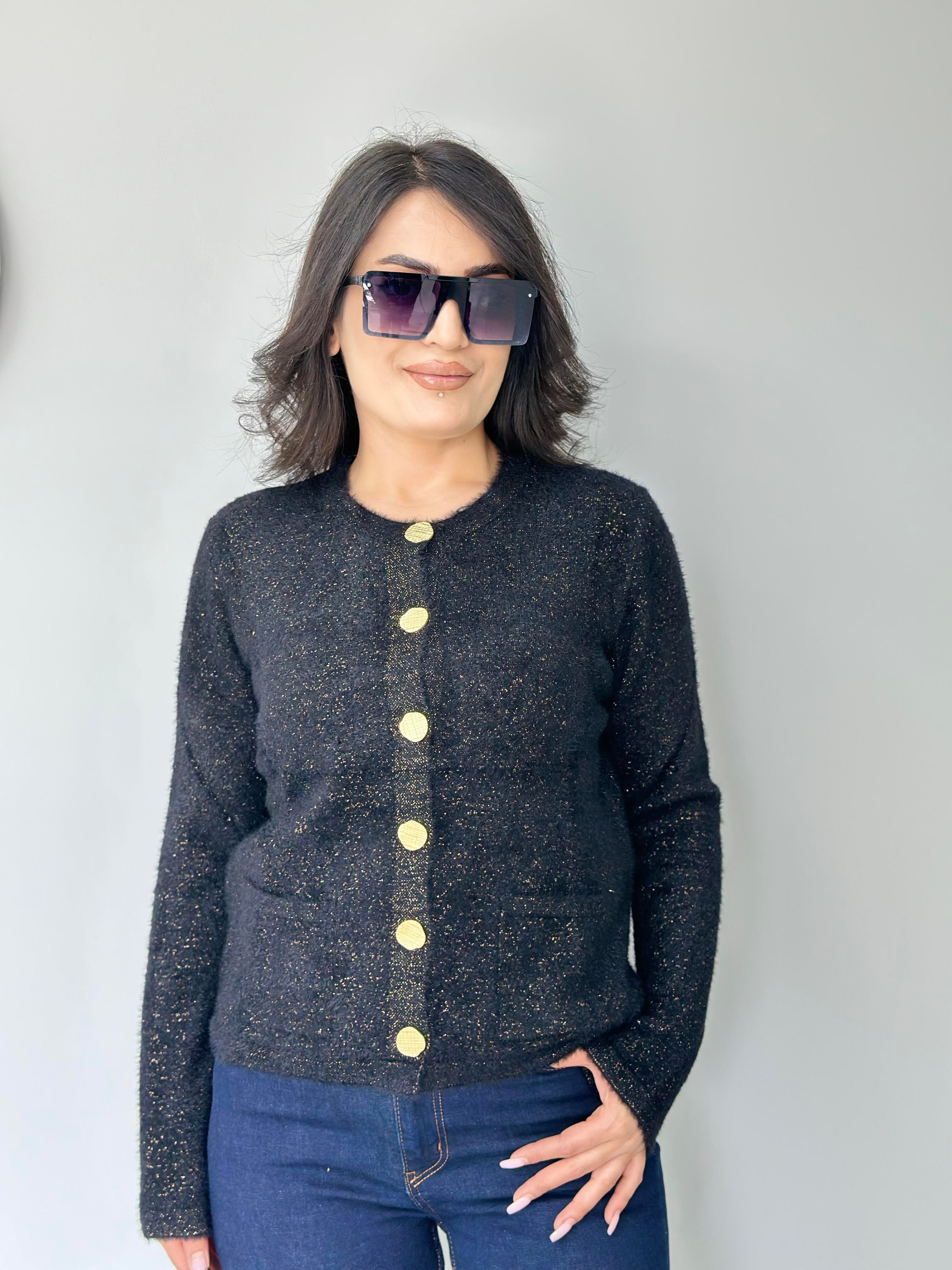 Cozy Siyah Gold Düğmeli Tüylü Premium Hırka A310