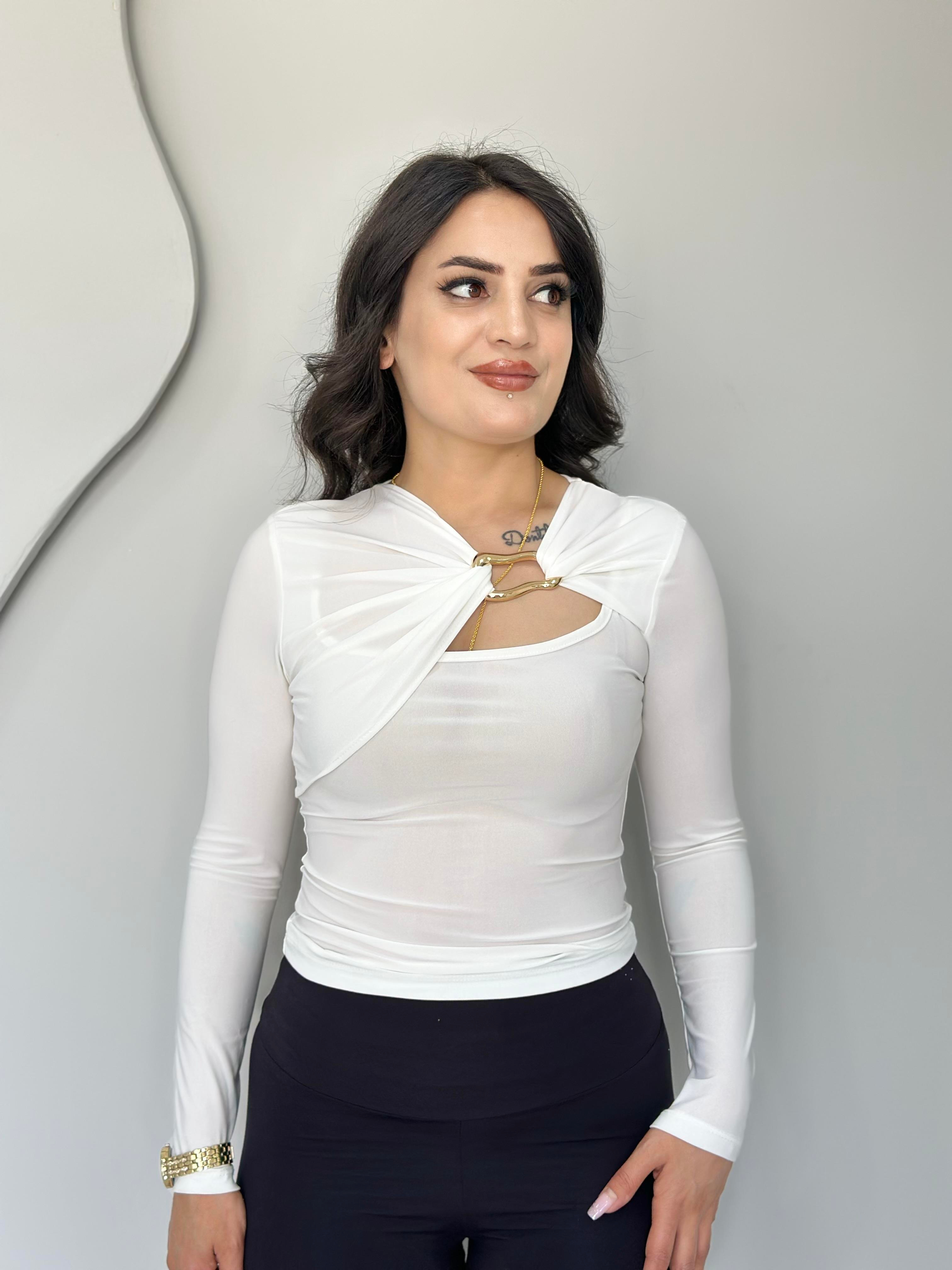 Jars Beyaz Metal Detaylı Sandy Kumaş Bluz A315 (A315)